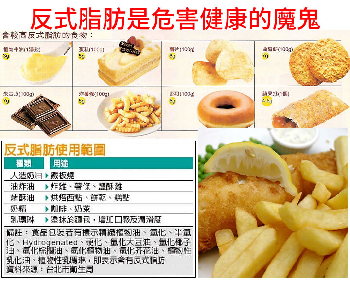 2. | 少吃油(反式脂肪)─奶油、牛油、花生醬、香油、肉燥、方便麵內附的油包等,這些油大多不是好油。 |